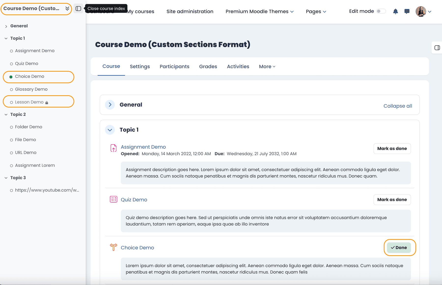 In-course subsections no longer open their own separate pages in Moodle 5.2. Instead, users stay within the same page context, which reduces unnecessary clicks and makes the whole course flow feel more connected.