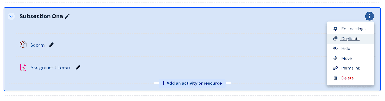 Course editors can now duplicate a subsection directly from the dropdown menu. That’s a small but useful addition if you build out structured courses and want to reuse layouts or content blocks quickly.