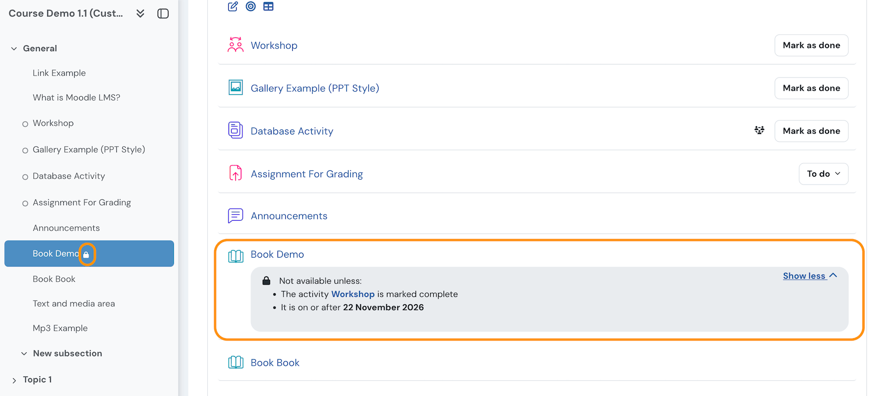 Moodle now does a better job of showing why content is restricted and what needs to happen before it becomes available. If you’ve ever had users asking why they can’t access something, this change will help.
